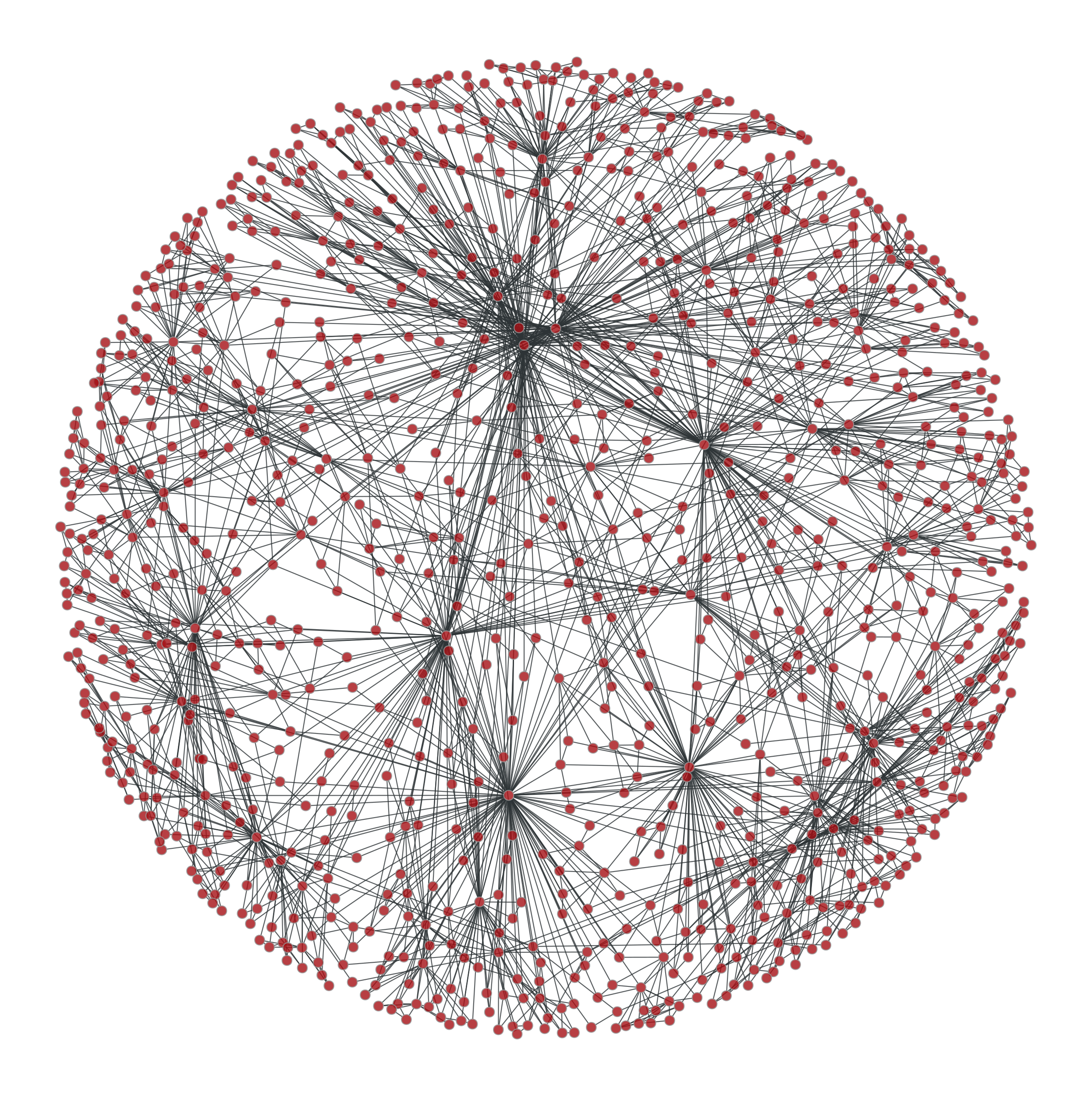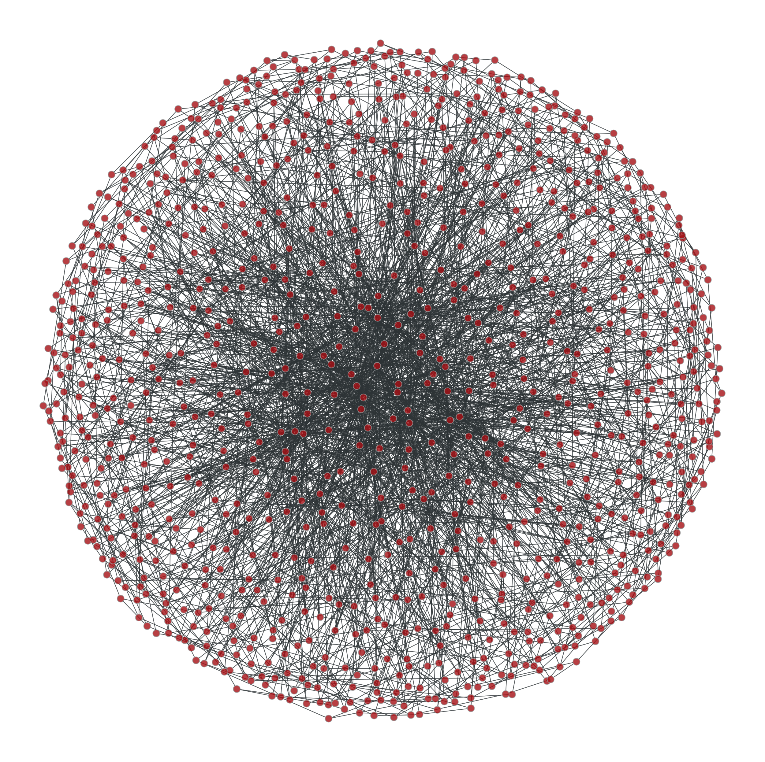 >>> g, pos = gt.triangulation(np.random.random((1000,2))) >>> pos = gt.arf_layout(g) >>> gt.graph_draw(g, pos=pos, output="rewire_orig.pdf") <...>